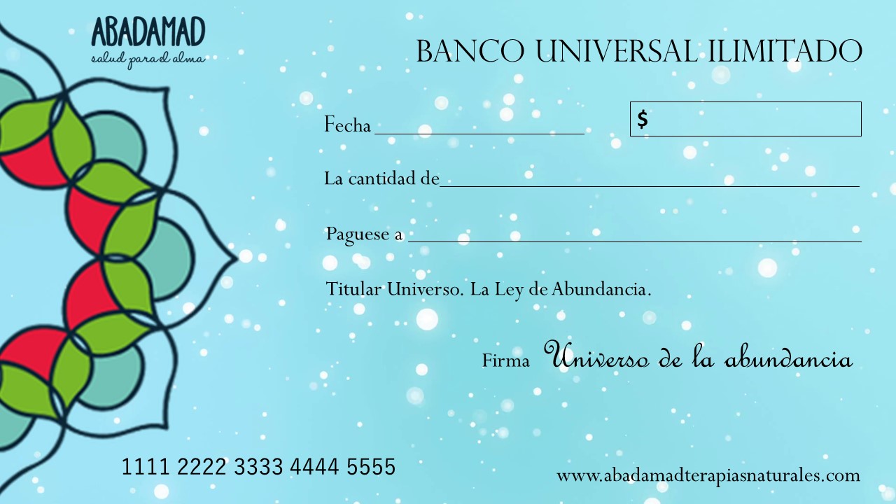 5. Firma: El cheque ya tiene la firma de Universo de la Abundancia.